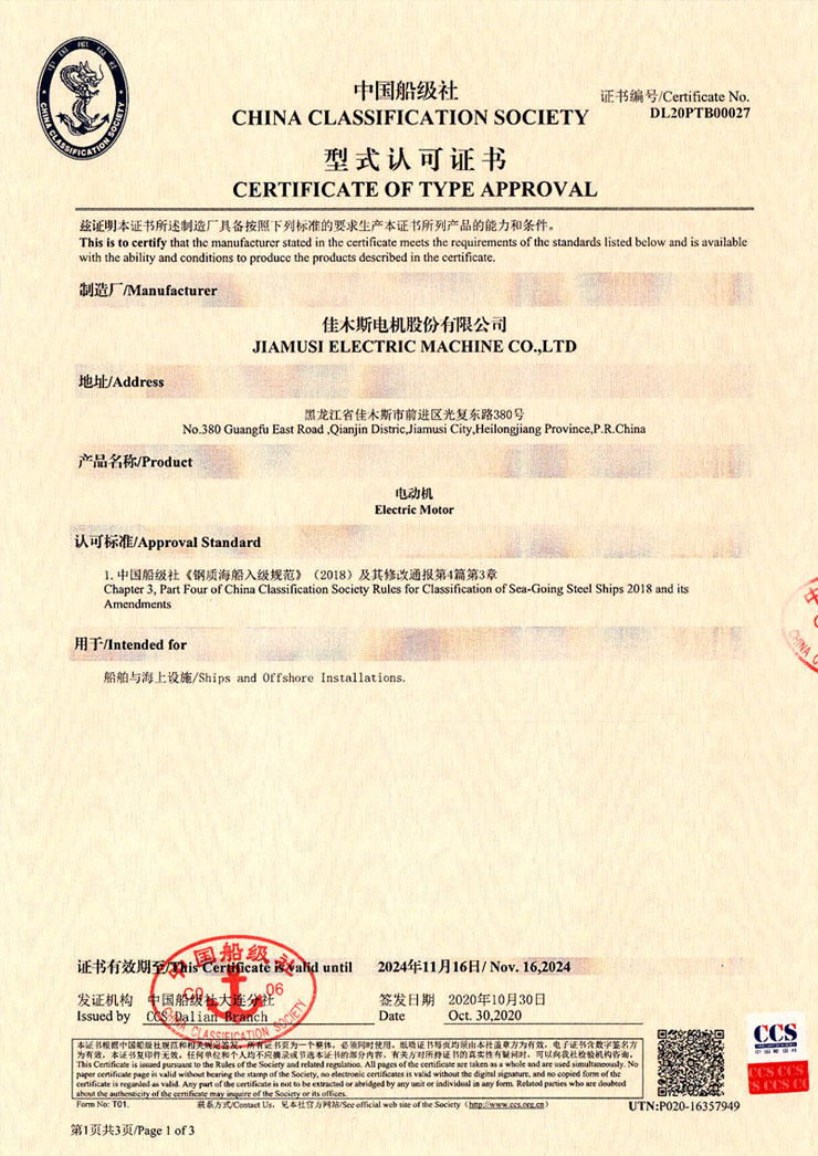 中央第一機(jī)械工業(yè)部佳木斯電機(jī)廠